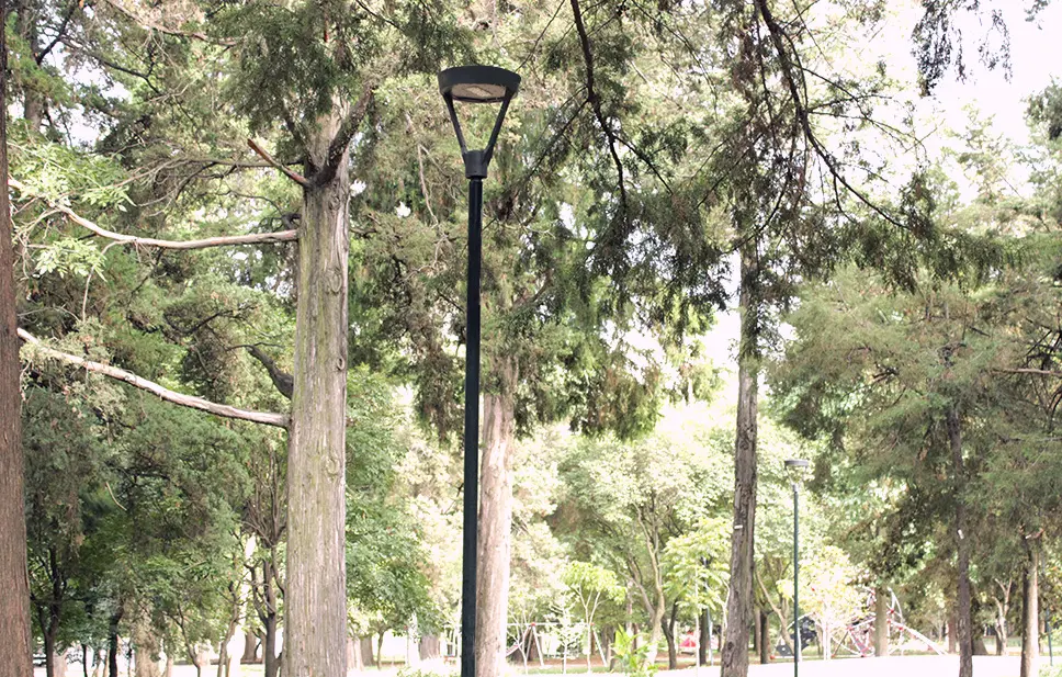 Este modelo destaca por su diseño modernista, ideal para integrarse con la identidad de Chapultepec. Su montaje se realiza directamente en punta de poste y cuenta con: