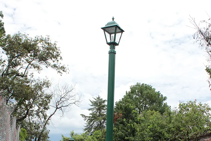 - Los luminarios fueron instaladas en caña de aluminio astriada, con base Vienna de sólida fundición de aluminio, logrando una integración estética con el entorno.