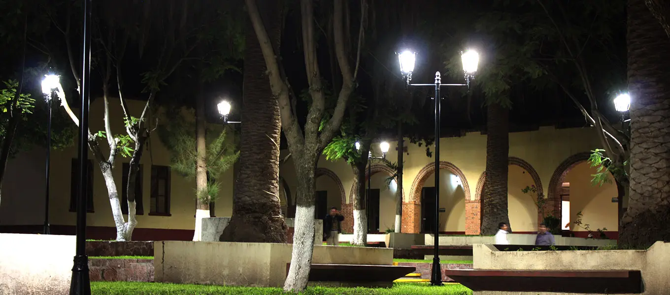 "Toljy ilumina las áreas comunes de la Universidad de Tepatepec, combinando diseño colonial con tecnología LED de alta eficiencia."