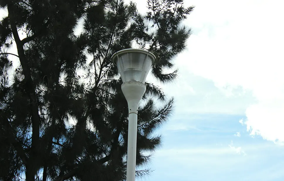 Industrias Toljy propuso e instaló el luminario modelo Málaga de la línea punta de poste modernista, ideal para espacios públicos con diseño tradicional y funcionalidad moderna.