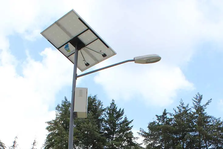 Los postes solares fotovoltaicos incluyen paneles que almacenan energía durante el día en baterías para su uso nocturno.