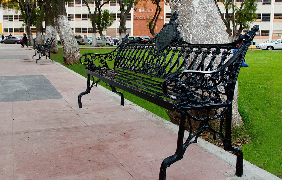 El proyecto también contempló la instalación de bancas porfirianas de la línea mobiliario urbano, fabricadas en fundición de aluminio con asiento de solera galvanizada y personalizadas con el logotipo del Pueblo Mágico, ofreciendo un toque de identidad local y comodidad a los visitantes.