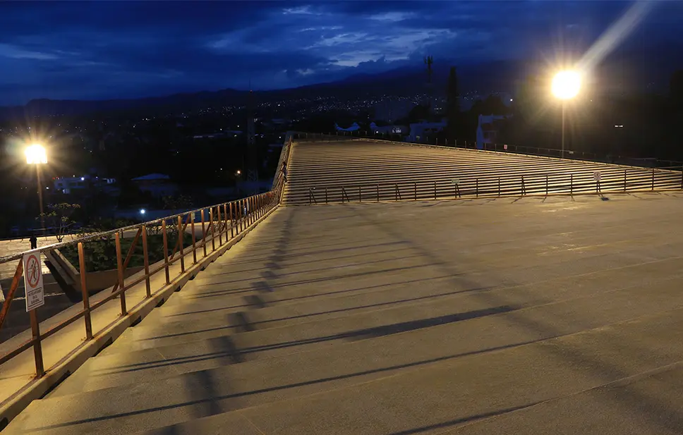 Brindar una iluminación eficiente y uniforme que permitiera realizar actividades al aire libre, garantizando un entorno seguro y confortable para los visitantes, sin alterar la estética ni el equilibrio arquitectónico del recinto cultural.