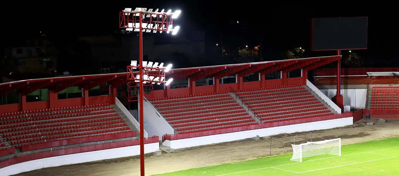 “El Estadio Tlahuicole brilla con la potencia y calidad de los luminarios Toljy, preparados para iluminar...”